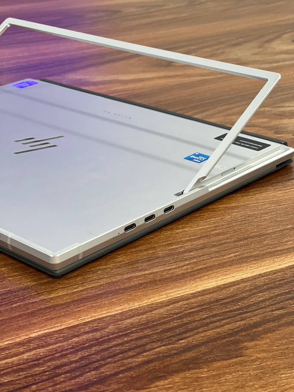 با معرفی اجمالی که در مورد لپ تاپ استوک hp elite x2 g8 بیان کردیم، حال نوبت آن است که به نقد و بررسی این دستگاه بپردازیم. دستگاه دارای جنس آلومینیوم CNC است که برش های الماس مانند (صاف تری) دارد. دستگاه دارای حالت جداشونده است و برای قرار دادن تکیه گاه صفحه نمایش آن، منافذ مناسبی در پشت تبلت قرار داده شده اند.