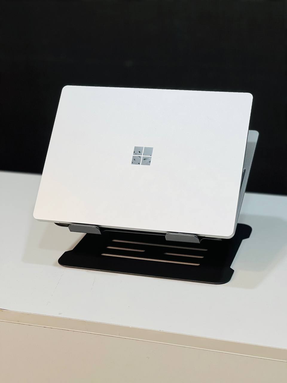 از پشت، بدنه فلزی و باریک آن به وضوح دیده می‌شود. تنها لوگوی مایکروسافت در مرکز قابل مشاهده است.